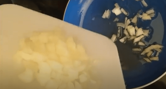 Then, cut up your veggies, onions first, because you can get the onions cooking while finishing chopping the other veggies.