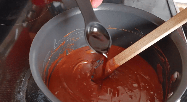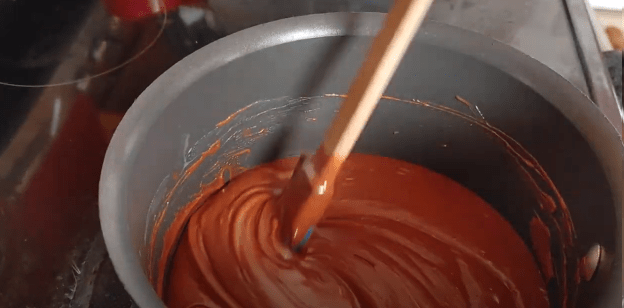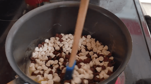 Add in your chocolate chips. This part takes a bit of time to get it all melted down, but just have some patience and stir frequently on low heat so none of the choco ends up burned.