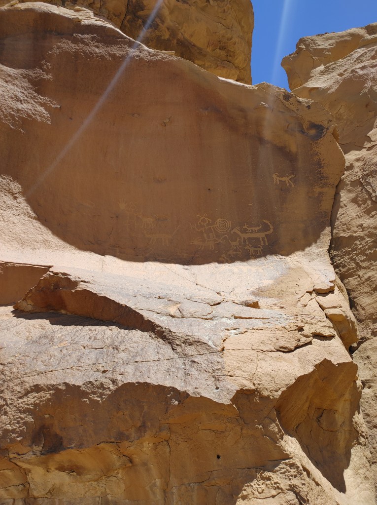 We parked at the visitor’s center and grabbed the available pamphlet at the table set up outside the doors (seriously, I’m so over COVID for so many things). We hit the trail to the right of the visitor’s center and saw our first bit of ruins. We then went quite steep up (but short) and were able to see some petroglyphs and pictographs. These ones are in very good shape.