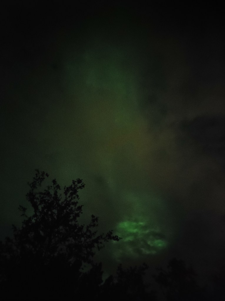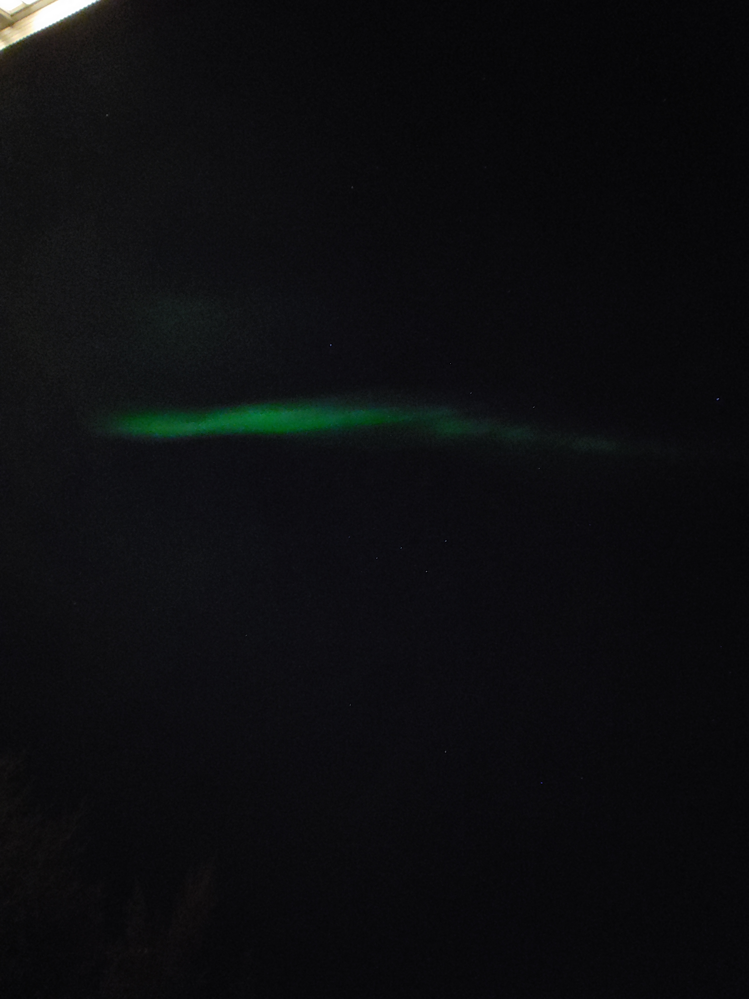 First of all, some of the newer cellphones have a night camera setting. Some of these are good enough that you can actually capture some of the auroras by simply selecting it. I did try a few with my night setting and I could see them, but they definitely weren’t as bright as the ones I got with my manual camera. For comparison, night camera is on the left, manual camera on the right: