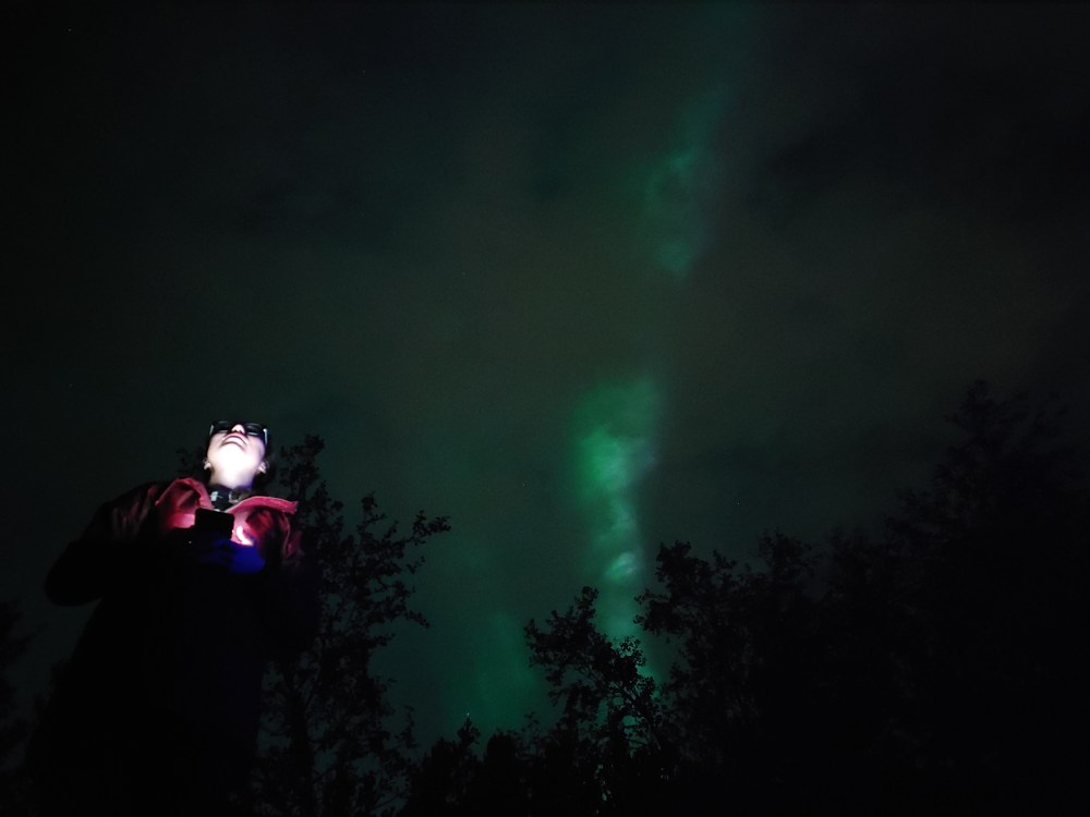 If you take it a step further, and have a Bluetooth remote for your camera, you can get it even steadier, as hitting the button on the phone to take a photo often causes a shake, even if very small. When you’re shooting at night, that tiny movement is more unforgiving. Plus, when you have a Bluetooth remote, you can capture you in the photo with the northern lights, which is pretty cool: