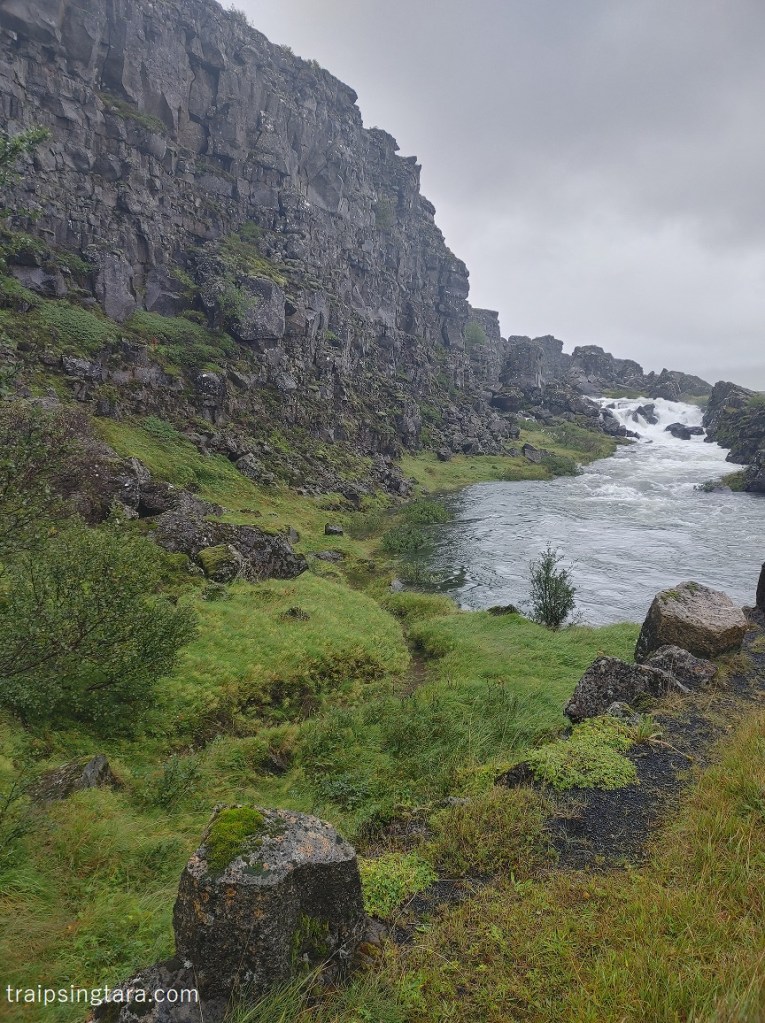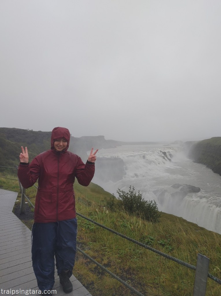 I put on my waterproof pants before getting out of the car and if I wouldn’t have, I would have been absolutely soaked to the bone. Which… my friend was absolutely soaked to the bone. Especially when she learned that her waterproof jacket she bought for this trip was, in fact, not waterproof. While I was in complete awe and absolutely amazed at the power and beauty of Gullfoss, I can’t help but feel like I didn’t get the full experience. I couldn’t wear my glasses because of the rain 🤣 so even that was detrimental to my experience.