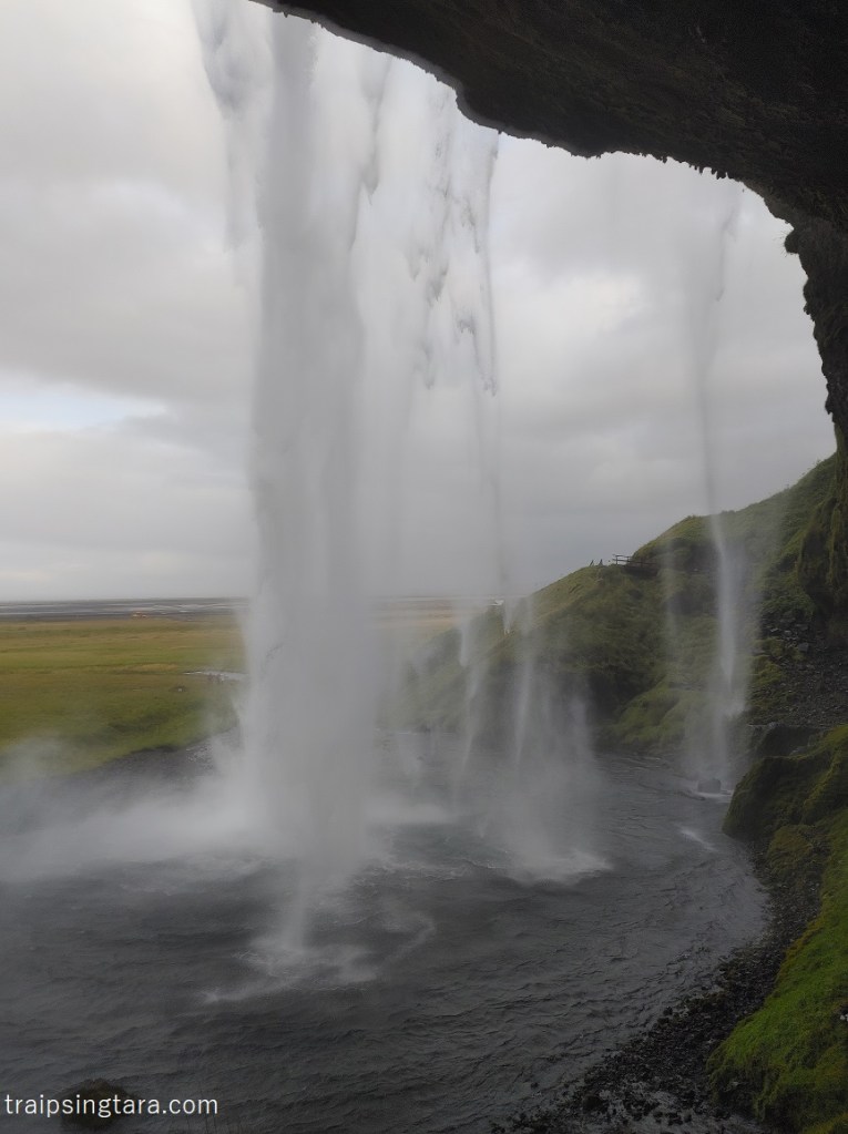 Turning on Road 249 (signs present), we arrived at Seljalandsfoss and saw a tour bus in the parking lot. We had hoped to make it before any of those, so it was a little disheartening. But it turns out they had been there for a while, because the majority of them were heading back when we were heading out. There was a pay to park meter here, but after using it, we weren’t sure if it was only for commercial tours or not, but best to check when you go! There was free use of toilets here, too.