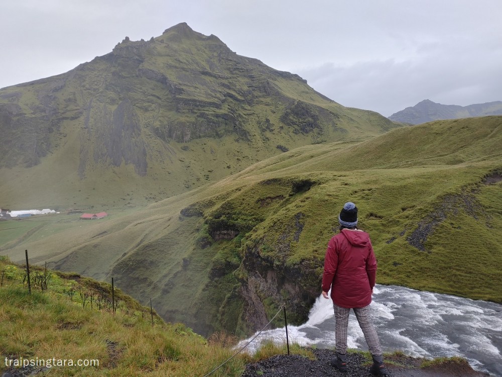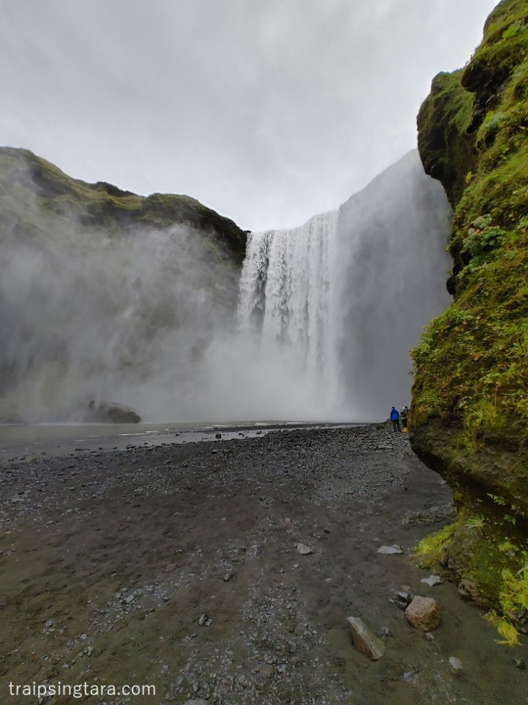 The next waterfall we checked out was Skogafoss. Skogafoss can be seen from Route 1, and you’ll follow the signs to get there, which isn’t far at all from the main road. This one is so cool because it’s like bam, there it is! Very short walk from the car pack and so massive, right in front of you. There’s also an extra long stairway (that took me a very long time to get up because my lungs were not cooperating) so you can view the falls from the top.