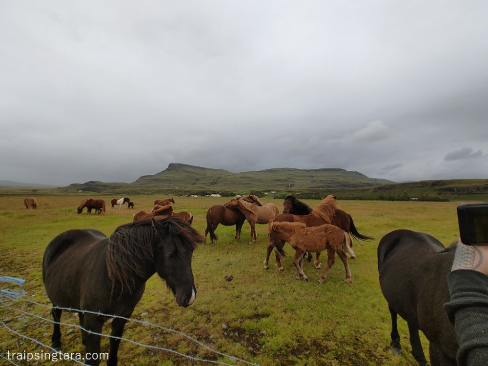 After taking in the stunning views, we headed back onto Road 1 to continue to our hotel. On the way, we saw these adorable horses and there just so happened to be a designated pull off across the street from them.