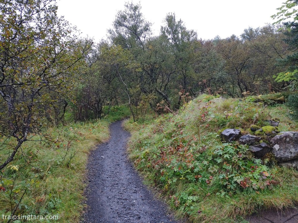 Our first stop was Thingvellir National Park, where the water runs through two tectonic plates. You’ll stay on Route 1 until Road 36, then turn on Road 36 (if going from Reykjavik). We didn’t do anything wild like snorkeling between them, but we did spend some time here, walking along the pathways. Keep in mind there was a parking fee here of 750 IKR for a family car. You can easily pay this at the self service machine in the building, all you need is your license plate number.