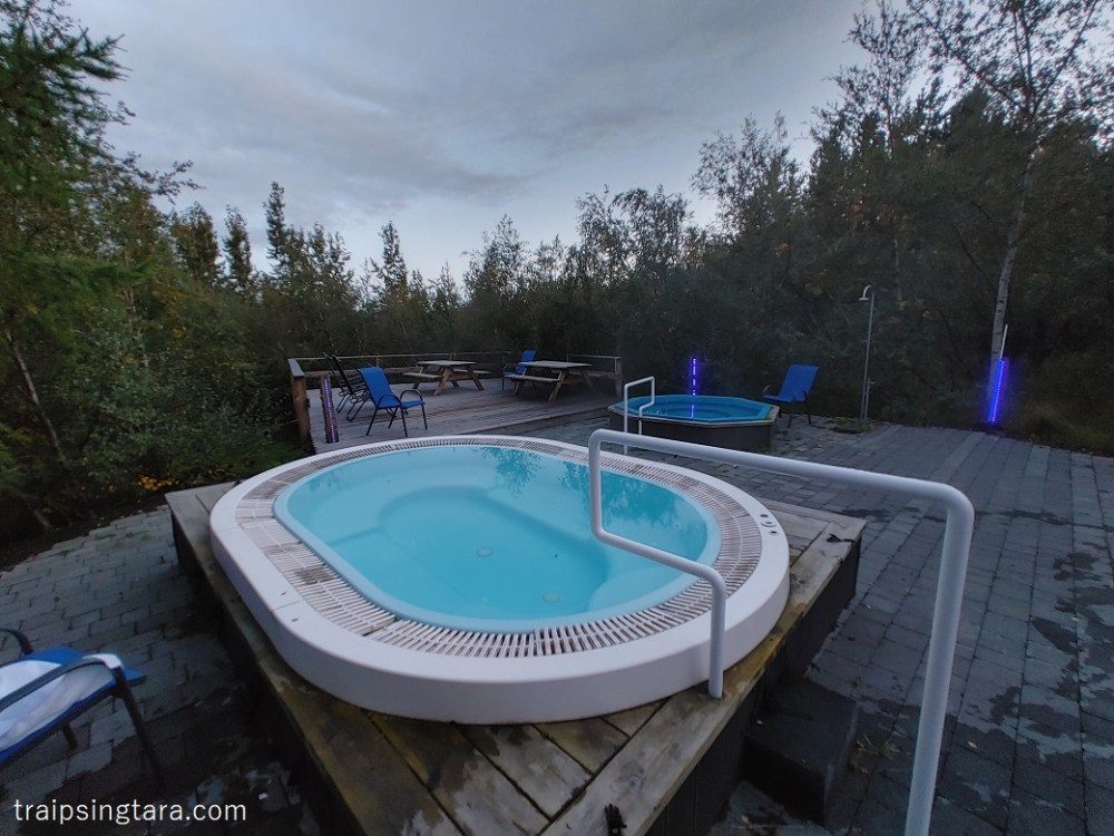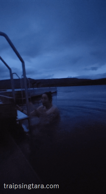 These baths overlook a cold lake and you do have the option to dive into this cold lake if you so choose. I thought they were all crazy, but halfway through the night, I decided I wanted to know how it felt, too, and opted to climb down the ladder, and experience the shocking cold water before quickly climbing back up and jumping into the warmth of the bath.