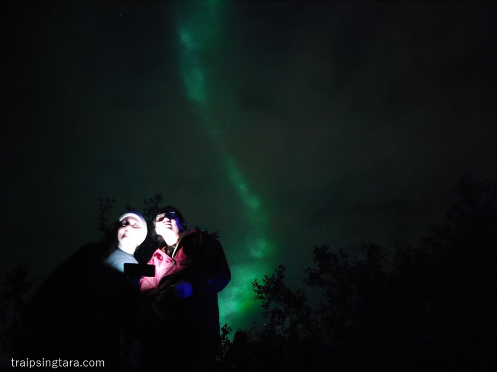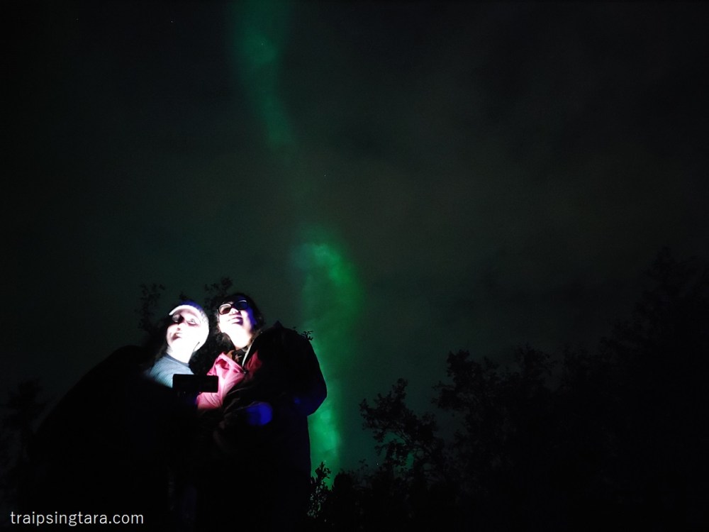 When a group of people realized I knew how to change manual camera settings, I became the Aurora Borealis saviour, helping other guests get some shots, too. If you’d like to know how you can change your manual camera to catch the northern lights, check out my post on that. One of the guests thought it was cute, the way we were laying on the ground to capture them, and took a photo of us, sending it through email 😊