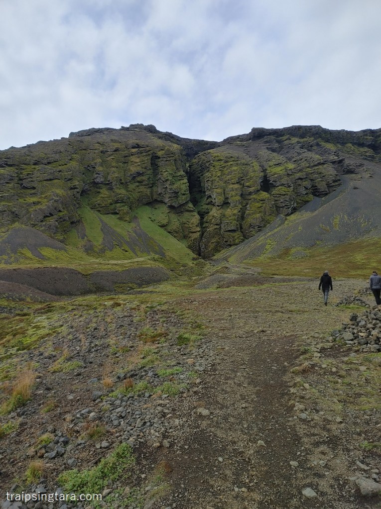 As we headed back onto the main road, we noticed this really cool looking crack in the mountain, seeing there was a car park. I remembered reading about Rauðfeldsgjá Gorge, and we decided to pull off to check it out. Rauðfeldsgjá Gorge has a steep hike up to it (it doesn’t appear steep, but it is!) and with the colder air, just be careful if you have weak lungs. Out of my whole trip, this was where I came frightfully close to having a full asthma attack. Just take it slow if you feel like it’s getting hard for you!