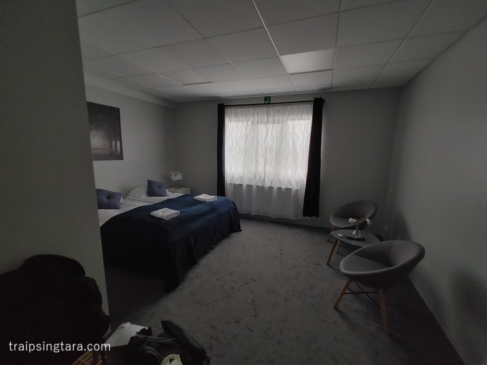 The inevitable finally happened. It was time to make our way back to Keflavik, to check into our last hotel for the night. Our flight was scheduled for the following morning, so we opted for a close location. We stayed at Hotel Tjarna, and I’ve never seen such a spacious budget hotel room. Though it was a bit noisy here (we faced the parking lot, with attached stores below) and the blackout curtains weren’t actually “blackout”, it was still a good place to rest our heads for the night, and I’d stay there again.